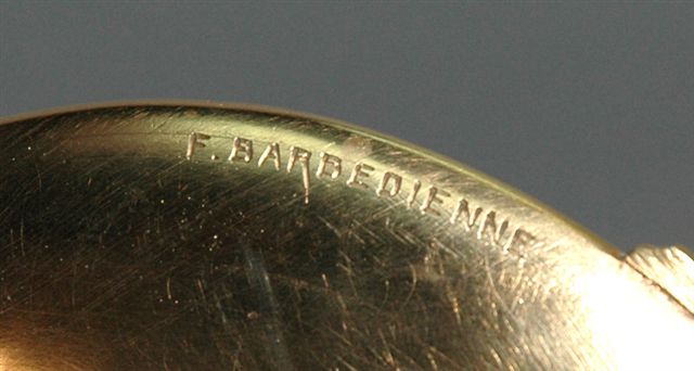 Signature gravée sur le bord inférieur de la coupelle: F. BARBEDIENNE, fin XIXème.