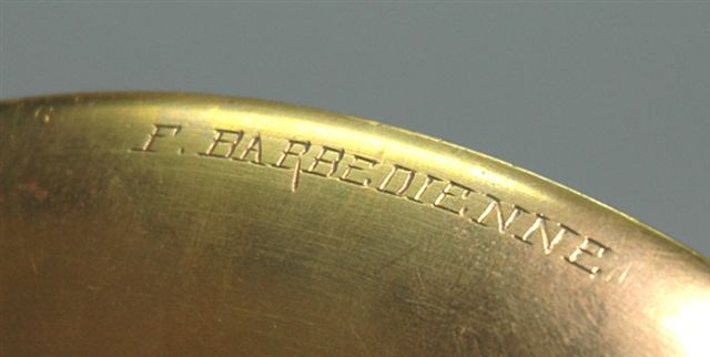 Signature gravée sur le bord inférieur de la coupelle: F. BARBEDIENNE, fin XIXème.