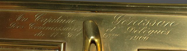 Signé GESCHUTZ et portant la dédicace suivante: " Au Capitaine Génisson, les Commissaires et Délégués du 17ème d'Infanterie. 1909 ".