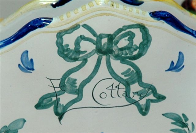 Faïences de NEVERS, signature au talon F COTTARD avec le nud vert, circa 1908 / 1926.