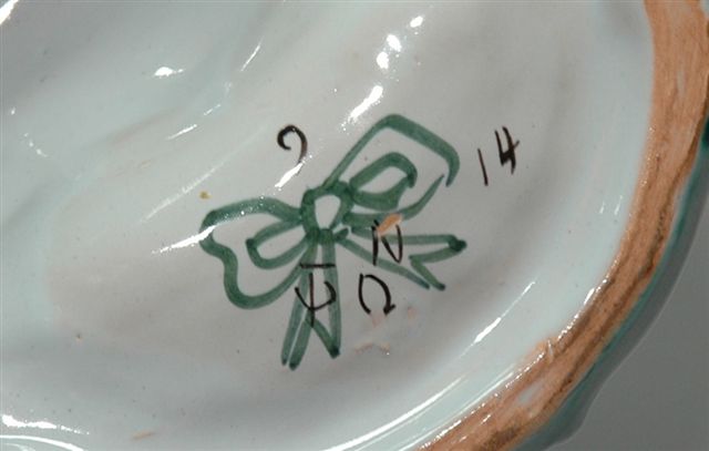 Faïences de NEVERS, signature au talon T C-N pour TROUSSEAU & CIE avec le nud vert, circa 1889 / 1892.