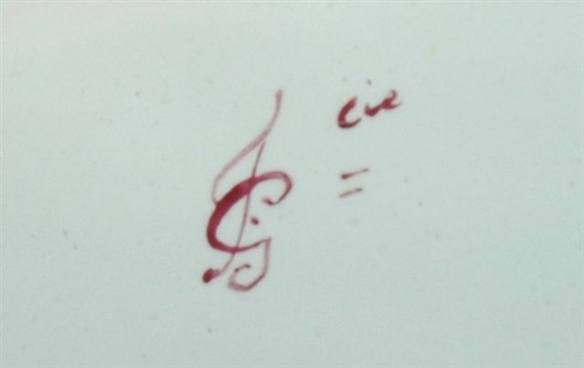 Marque (encré pourpre) le monogramme FG Cie en cursives entrelacées pour Faïencerie F GORAS: circa 1880 - 1890.