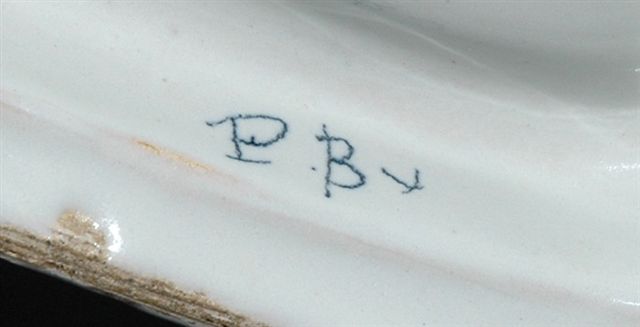 Faïences de MALICORNE, marque (encrée bleue) PBx pour POUPLARD-BEATRIX, circa 1875-1897.