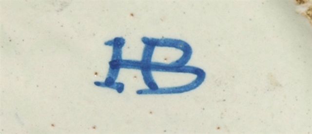 Faïences de QUIMPER, marque (en bleu) HB pour la Manufacture La Hubaudière dite (La Grande Maison), vers 1883.