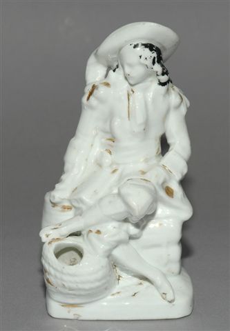 ENCRIER en porcelaine de PARIS, série blanc et or des personnages militaires: ici un militaire assis au repos.