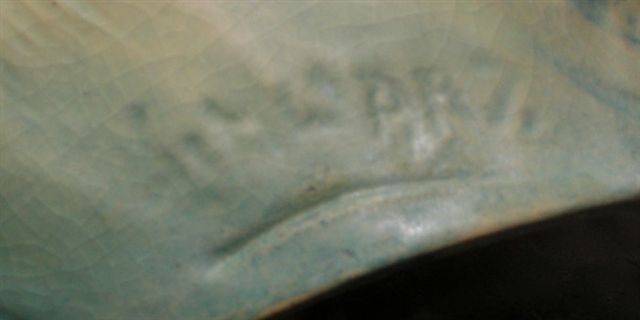 Initiales en creux, BB du céramiste Bernard BLOCH, et au stylet sur l'arrière, celle du sculpteur, (difficile à déchiffrer), vers 1880-1890.