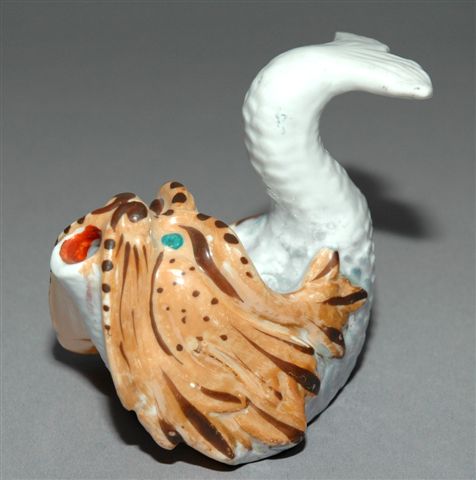 ENCRIER SIPHOÏDE en porcelaine forme de poisson chat de couleur gris blanc et ocre;