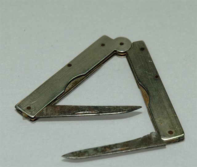 CANIVET ou taille-plume d'oie d'époque début XIXème. système pliable à double lame.