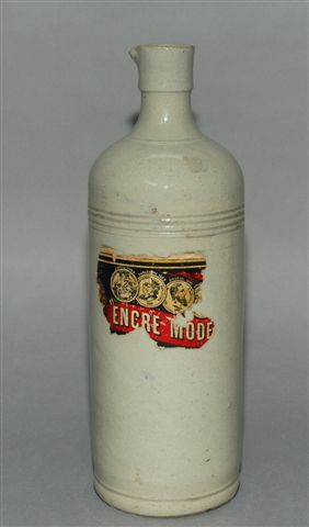 ENCRE ANTOINE, dans un flacon en grès gris à bec verseur, contenance 1 litre.