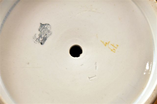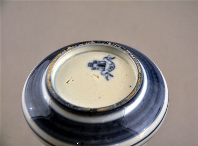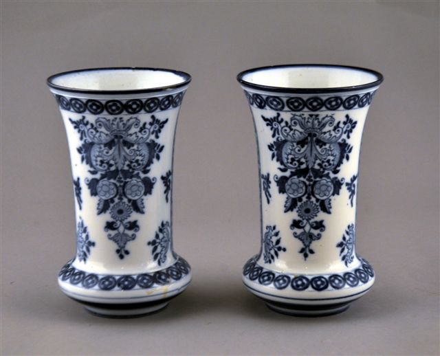 PAIRE DE VASES CORNET À PIED BOULE en faïence, à décor en camaïeu de bleu de lambrequins et de frises fleuries dans le goût de Delft (un petit éclat à chaque col).
