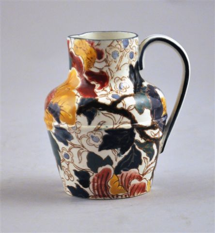 Petit BROC en faïence, à décors de fleurs polychromes dans le goût de Delft oriental.