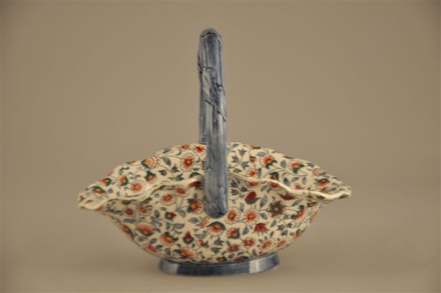 PANIER "CHAPEAU" en faïence, à décor polychrome floral dans le goût du Cachemire.