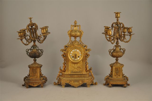 GARNITURE DE CHEMINÉE en bronze doré composée: