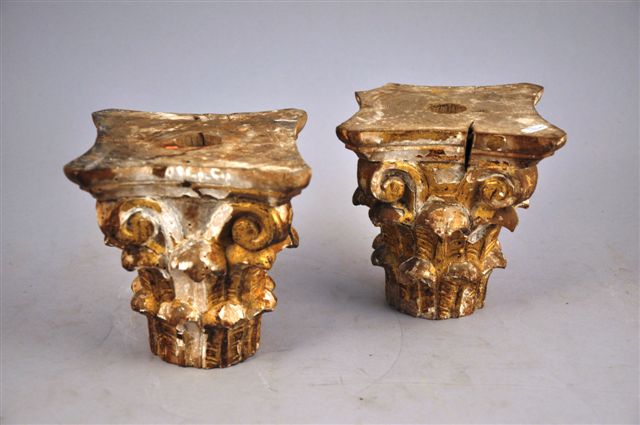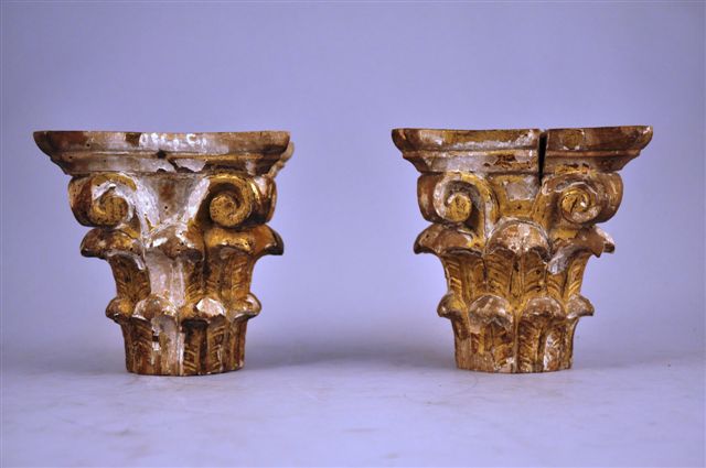 PAIRE de CHAPITEAUX corinthiens en bois sculpté et doré.