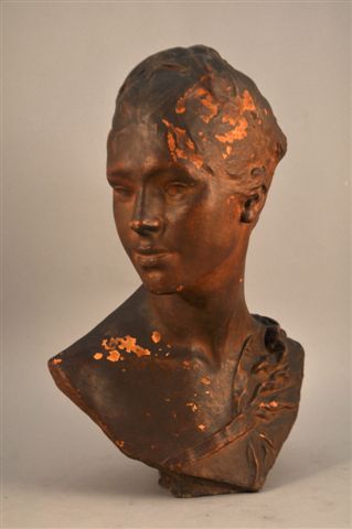 ANONYMEBuste de femme.Plâtre.Haut. 46 cm (égrenures, éclats).