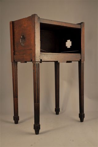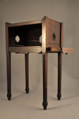 CHEVET en bois teinté, pieds fuselés de section quadrangulaire, cannelés et rudentés. Travail rustique. Haut. 78, Larg. 47, Prof. 32,5 cm.