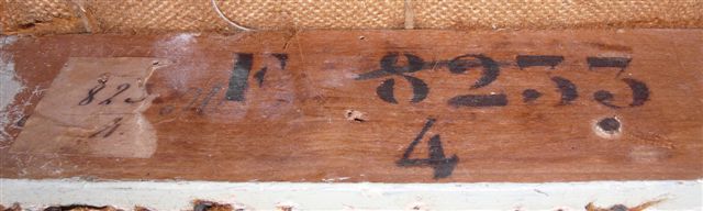 Pour les deux chaises: N° au pochoir en noir "F 8233 4" rayé et " [double] F 6090", et en rouge "308 et " F 13931".