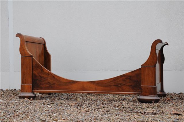 MERIDIENNE en noyer et placage de noyer mouluré, à chevets renversés.