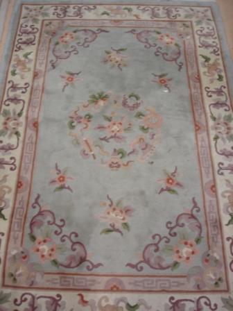 TAPIS de Chine, manufacture de Tien-Sin, à décor de compositions fleuries, couleurs pastels. 183 x 123 cm.