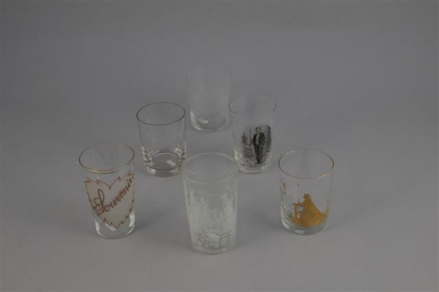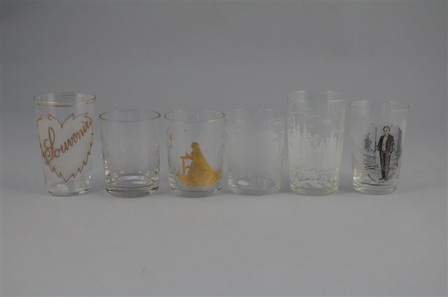 LOT de 6 GOBELETS en verre, certains gravés, l'un marqué "Rouen". (égrenure à l'un)