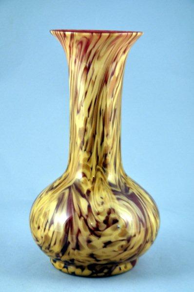 Grand VASE À COL ÉVASÉ en verre teinté rouge et jaune opaque à inclusion de poudre d'or.