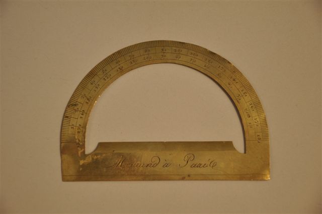 DEMI-RAPPORTEUR divisé en laiton gravé. Signé "Meurand à Paris". XVIIIème. 9,5 x 6,5 cm (petits chocs sur le flanc)
