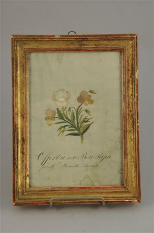 Broderie en soie, mention manuscrite "Offert à son Bon Papa par Melle Henriette De Paulo"
