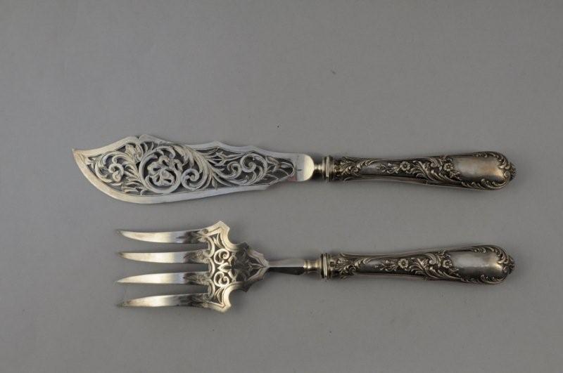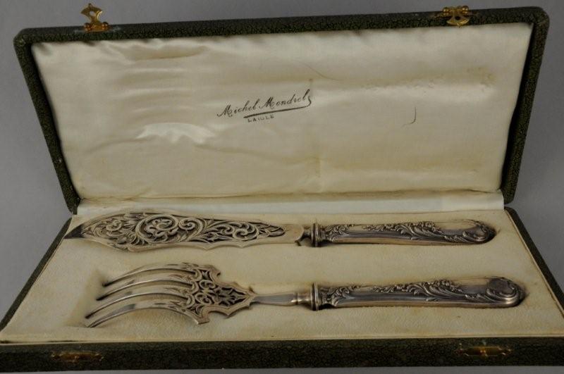 COUVERT à SERVIR le POISSON à manches en argent fourré...