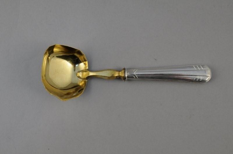 LOUCHE à CRÈME à manche en argent fourré à motifs géométriques. Poincon Minerve. Art Déco. Poids brut: 125 g.
