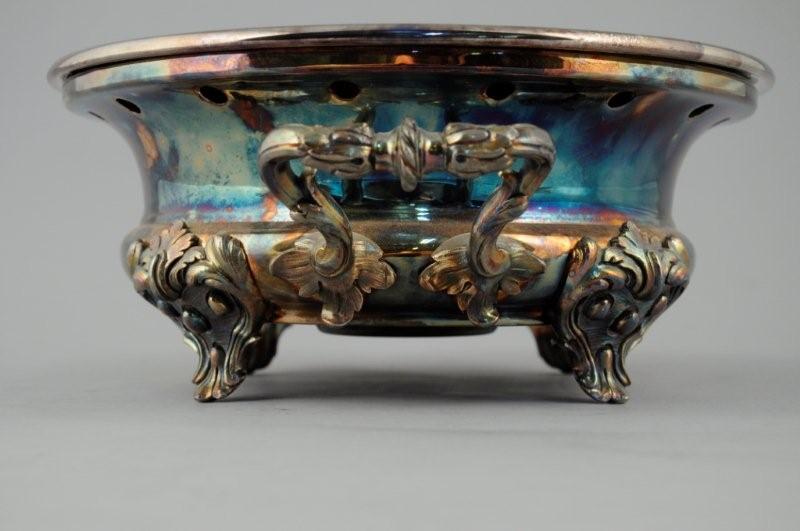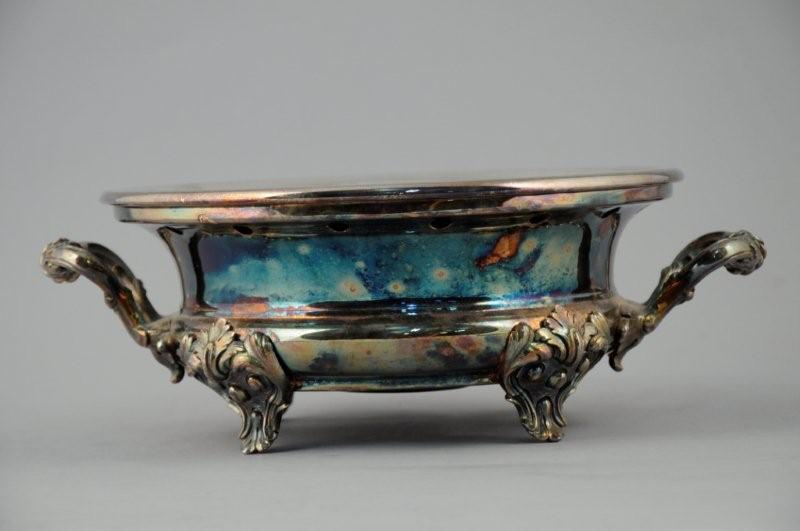 CHAUFFE-PLAT en métal argenté. Il repose sur quatre pieds feuillagés. Anses mouvementées. CHRISTOFLE. Fin XIXème. Haut. 11, Diam. 25,5 cm.