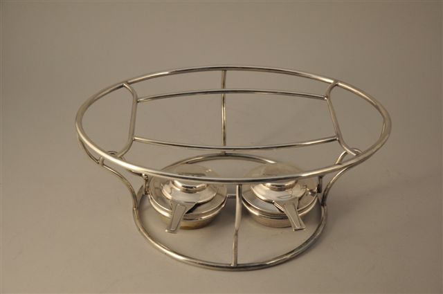 RÉCHAUD de TABLE à deux feux en métal argenté. GALLIA.