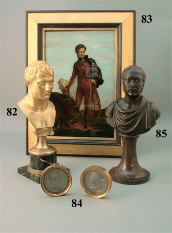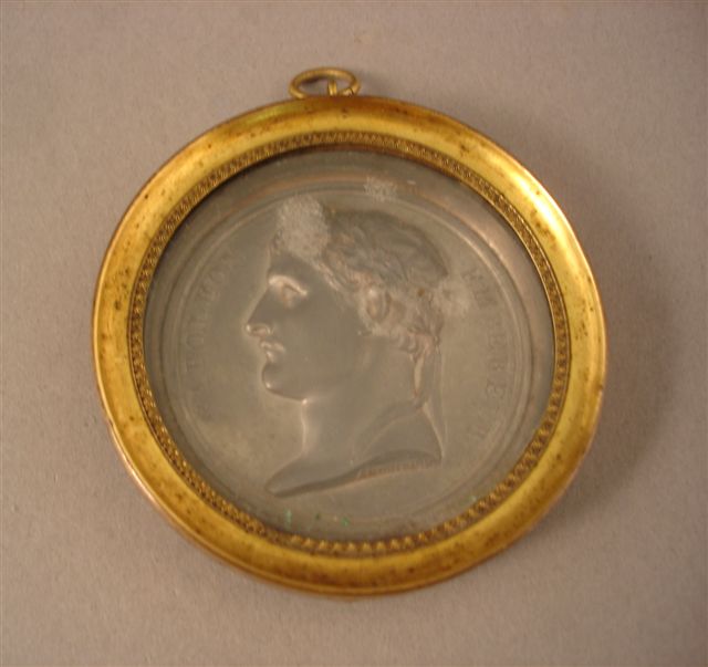 Sous l'Empire, Jean-Bertrand Andrieu compte parmi les plus célèbres médailleurs de Paris. Comprenant tout l'intérêt qu'il peut tirer de la diffusion des médailles pour asseoir son pouvoir et renforcer sa légitimité, Napoléon décide, en 1806, de lancer la grande aventure de l'histoire métallique de son règne, dans la continuité de l'oeuvre de Louis XIV et de celle des empereurs romains dont il se veut l'héritier. C'est ainsi que de nombreuses médailles sortent des ateliers de la Monnaie de Paris, qui commémorent les victoires personnelles de l'Empereur et diffusent, dans toute l'Europe, l'image d'un prince héroïque et vertueux. Ces deux médailles correspondent à la double volonté, familiale et politique, de Napoléon de s'inscrire dans la tradition antique et royale d'un souverain guerrier et protecteur de son peuple. Représenté de profil, la tête recouverte d'une couronne de laurier, Napoléon apparaît comme un nouveau César. Cette médaille doit être rapprochée de celle qu'Andrieu réalisa en 1806 pour commémorer la victoire d'Iéna; un modèle dont il s'était déjà servi pour commémorer la création du Musée Napoléon au Louvre et qui devait connaître, tout au long de l'Empire, de très nombreuses éditions.