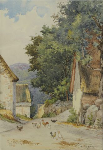 Aquarelle signée et datée 1886 en bas à gauche, dédicacée en bas à droite.