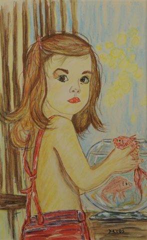 Gouache aquarellée, crayon et pastel, signé en bas à droite. Mention aux dos "Nicole, fille de Sylvio, Café des Arts, St Rémy de provence, vers 1955"