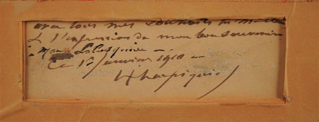 Au verso en " fenêtre ": Avec tous mes souhaits les meilleurs et l'expression de mon bon souvenir Msieur La... le 1 janvier 1910, Harpignies.