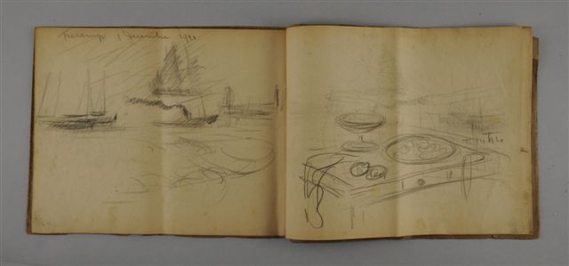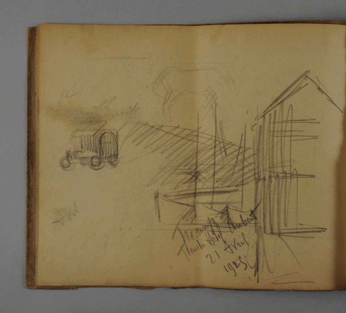 22 pages - environ 39 dessins pleine page, certains signés et datés: Paris rue Clignancourt 1924, Fécamp 1921-1923-1924-1925, Pont Aven 1922...