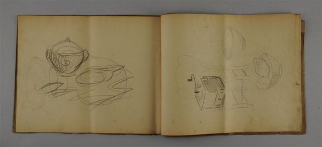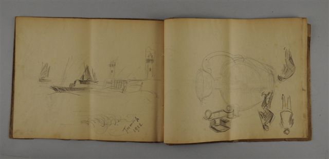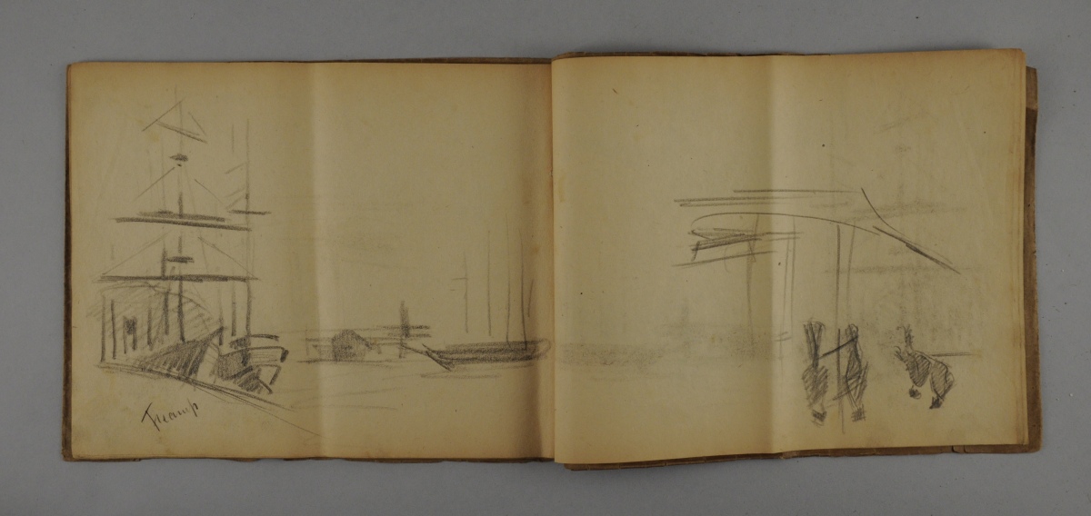 Carnet à dessins, graphite et crayon, parfois couleurs - signé sur la couverture bistre.
