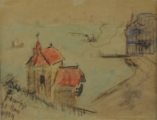 Aquarelle, et crayon. Signée, située en bas à gauche et datée: 21 mars 1924.