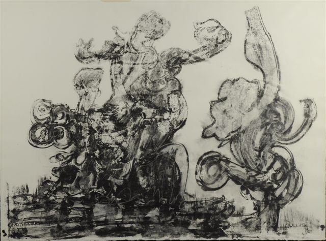 Encre et gouache sur papier, signé et daté 65 en bas à droite.