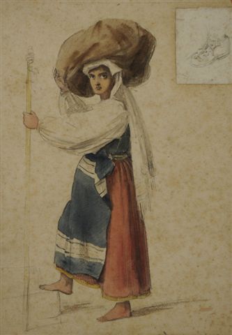 Deux études de femme marchand, l'une avec détail d'un soulier.