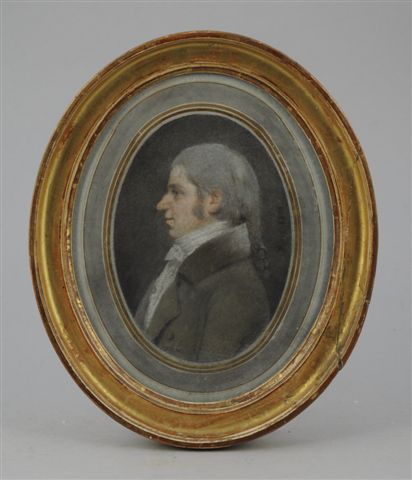 Pastel sur papier. Signé "Petit" et daté "1801. Dans un cadre ovale en bois doré.
