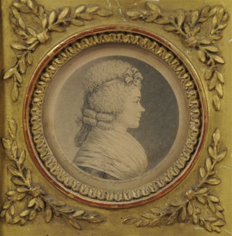 Deux physionotraces de forma tondo, formant pendants. Cadre en bois doré à palmettes. Restauration.