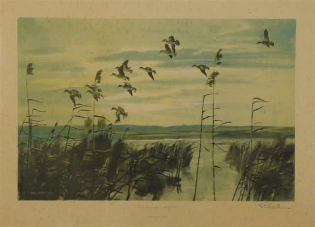 SCOTT Peter. Teal (sarcelles d'hiver) on a grey morning.