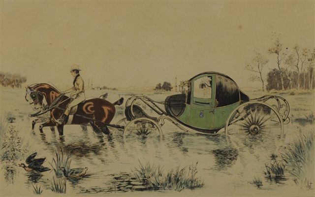 Gravure rehaussé d'aquarelle, signée et daté 1896 dans la planche.