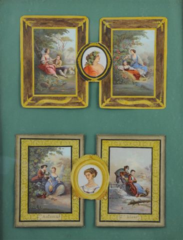 Double paire de chromolithographies dans un encadrement gouaché réunies par un médaillon