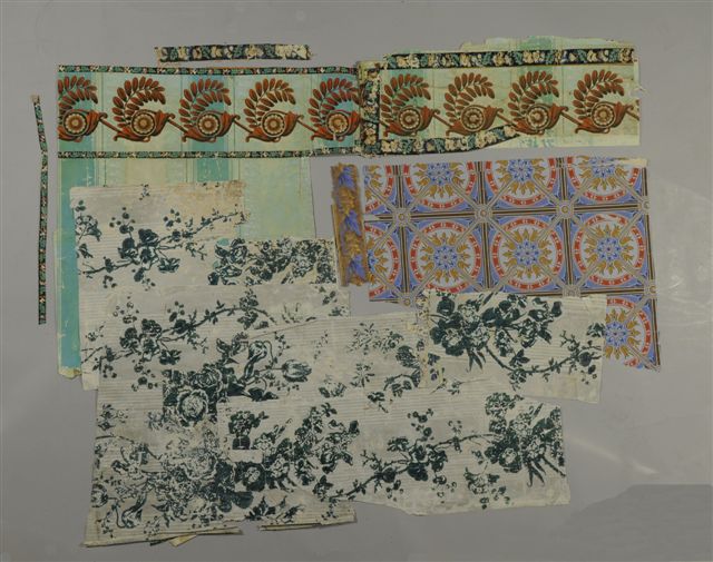 Joint: fragments de PAPIERS PEINTS à la planche, XIXème.