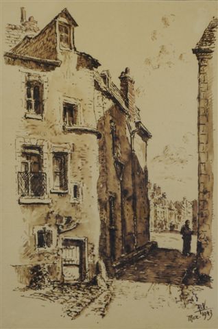 Lavis d'encre signé R.V. et daté 1943 en bas à droite.