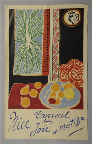 MATISSE (1869-1954, d'après). Travail et joie, Nice, H. Matisse. Affiche. Mourlot imp.