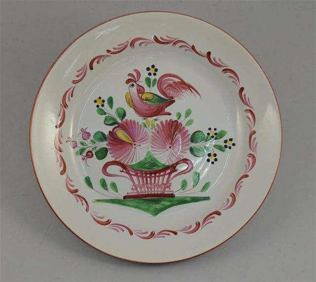 EST de la FRANCE. PLAT rond en faïence. Décor dans la bassin d'un coq sur un panier.