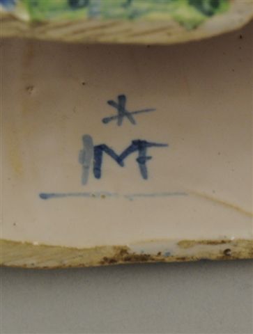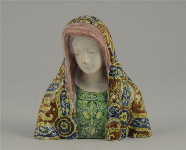 VARIA. Buste de la Vierge. Faience polychrome peinte. Monogramées "M.F.", sous une étoile.